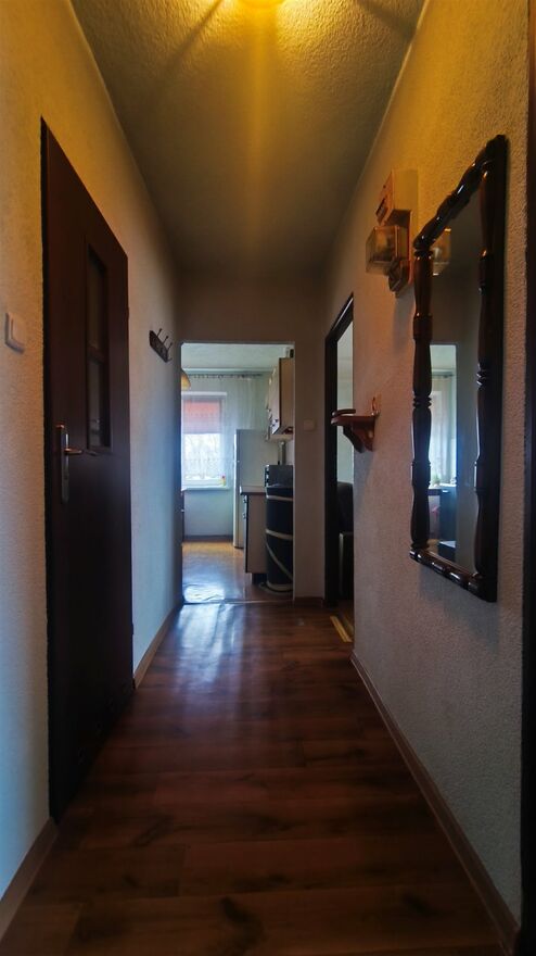 Wieś Bytowo / Dobrzany / Pomorze ZachodnieNa sprzedaż 2-pokojowe mieszkanie w Bytowie o powierzchni 38 m², położone na pierwszym piętrze. To propozycja dla osób szukających kompaktowego lokum w dobrej lokalizacji - zarówno do zamieszkania, jak i jako inwestycja pod wynajem. Mieszkanie w Bytowie składa się z dwóch pokoi, długiego korytarza, kuchni z oknem oraz łazienki. Funkcjonalny rozkład pomieszczeń pozwala na wygodną aranżację przestrzeni i dostosowanie wnętrza do własnych potrzeb. Kuchnia z naturalnym doświetleniem zapewnia komfort codziennego użytkowania. Ogrzewanie odbywa się za pomocą pieca kaflowego. Media: prąd, brak instalacji gazowej. Do nieruchomości przynależy pomieszczenie gospodarcze, które stanowi dodatkową przestrzeń do przechowywania. W cenie zawarty jest również udział w gruncie. To mieszkanie na sprzedaż w Bytowie będzie idealnym rozwiązaniem jako pierwsze mieszkanie, nieruchomość inwestycyjna pod wynajem lub alternatywa dla mieszkania w bloku.